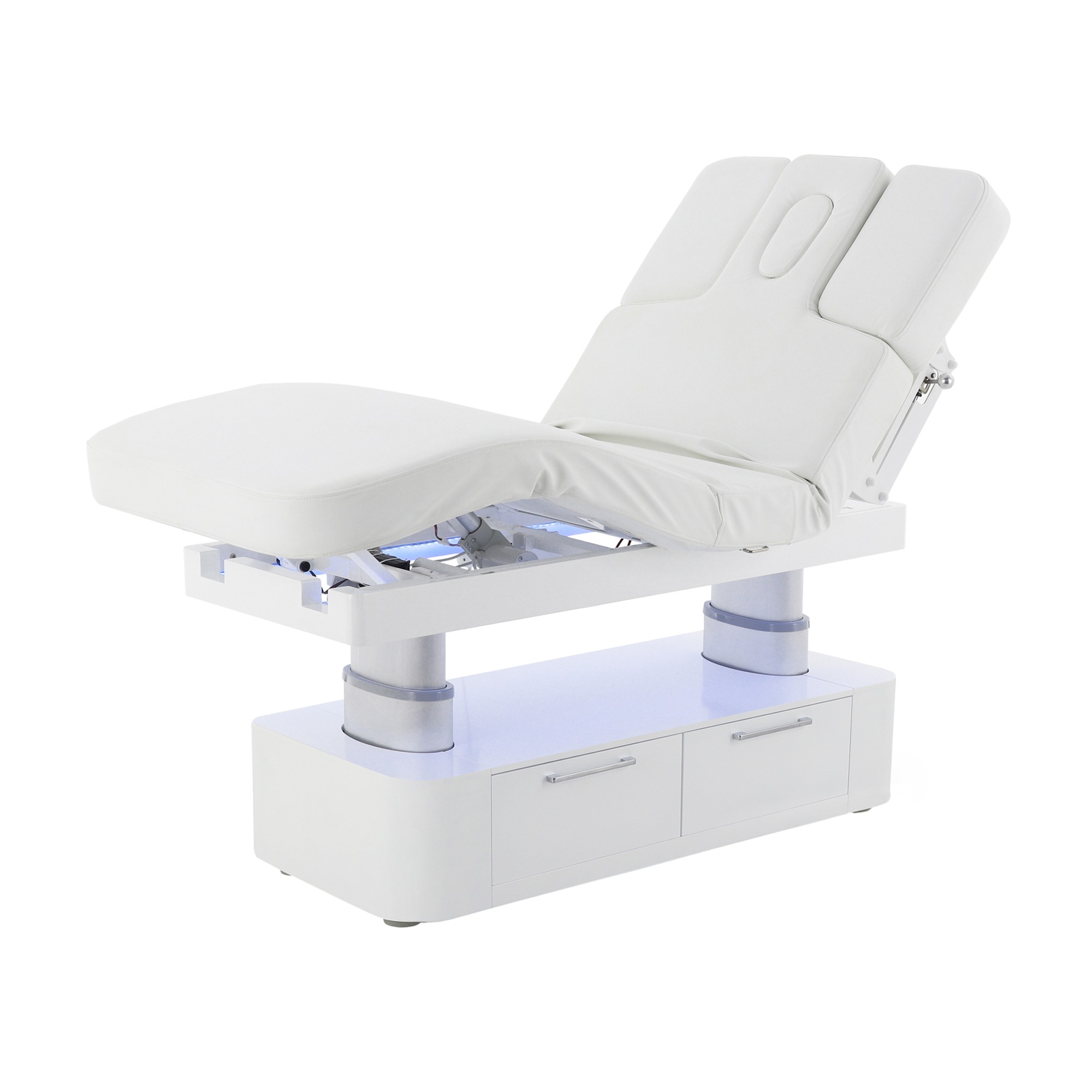 Многофункциональное массажное кресло с электроприводом для оснащения косметологических центров, массажных кабинетов и салонов красоты по последнему слову техники! Массажное кресла – это: Надёжный стальной каркас, покрытый ударопрочный эпоксидной эмалью Многосекционное ложе с удобной системой регулировки Пульт управления с мембранными кнопками для защиты от влаги и загрязнений Экологически безопасные гипоаллергенные материалы Прогрессивный дизайн, который выгодно подчеркнёт статус заведения Материал обивки – полиуретановая кожа – имеет приятную на ощупь фактура, устойчив к влаге и истиранию. Наполнитель – гипоаллергенный ППУ – не боится деформации, легко подстраивается под форму тело и быстро возвращается в прежнее состояние. Массажное кресло прошло все необходимые испытания и получило регистрационное удостоверение Росздравнадзора. Покупая наши товары, вы можете быть уверены, что приобретаете профессиональное медицинское оборудование, соответствующее всем критериям качества.